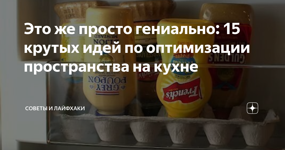 Это же просто гениально: 15 крутых идей по оптимизации пространства на кухне Как ни крути, но кухня - самая важная часть дома. Говорят, кухня - сердце дома, а стол его хозяин. Это место, где создаются кулинарные шедевры. Любая хозяйка заботится о том, чтобы в ее владениях всегда царил порядок, все было разложено по местам, по полочкам, ведь когда все находится под рукой, готовка в удовольствие!