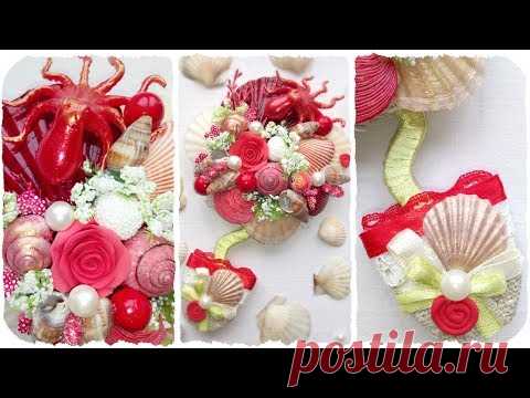 МАГНИТ на ХОЛОДИЛЬНИК: красим ракушки ЛАКОМ для НОГТЕЙ, лепим розы из керамопластилина