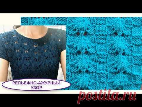 Рельефно-ажурный узор Листочки на шахматном фоне 503 Узоры спицами