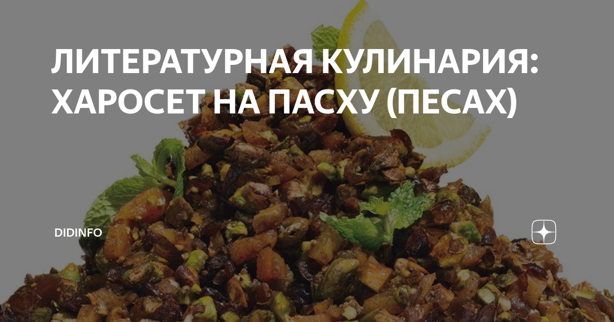 ЛИТЕРАТУРНАЯ КУЛИНАРИЯ: ХАРОСЕТ НА ПАСХУ (ПЕСАХ) Тем временем апрель уже полностью вступил в свои права, наш любимый двор зазеленел, забубонился пупочками фиолетово-желтых ирисов, нежно-красных тюльпанов и золотинками нарциссов. В воздухе вкусно пахло свежей травой и влажной землёй, а детвора с удовольствием гуляла в расстегнутых пальтишках и без надоевших за зиму шапок.
