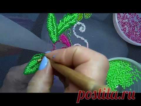 Вязание тамбурным крючком. Заполнение листика бисером.