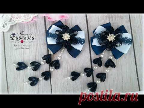 🎀 Бантики с цветком в технике квиллинг. 🎀 Канзаши 🎀 Ribbon bow Kanzashi 🎀 Hand мade 🎀 DIY