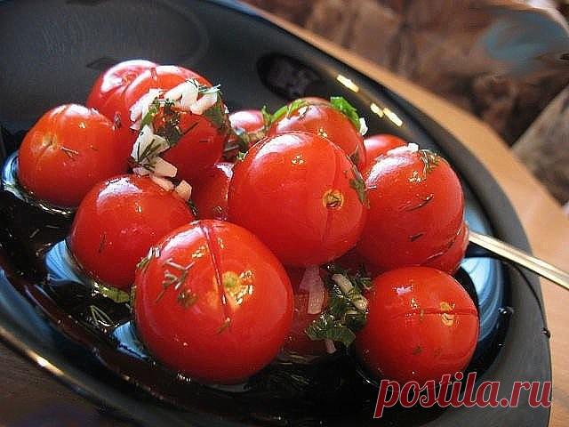 От таких малосольных помидоров с чесночком никто не откажется. Готовятся очень просто и быстро, вкус - изумительный.