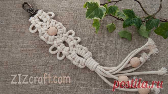 Как сплести брелок из веревки в технике макраме. Материал: нити (веревка) хлопок диаметр - 4-5 мм, бусины деревянные, клипса или кольцо.