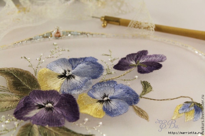 Художественная гладь. Мастер-класс по вышивке анютиных глазок