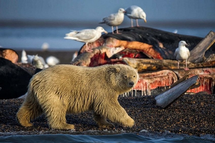 Таяние льдов у берегов Аляски раньше обычного выгнало белых медведей на материк | Живой мир - природа