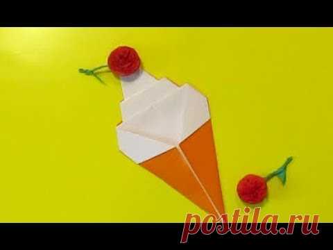 Оригами из Бумаги МОРОЖЕНОЕ с ВИШНЕЙ Закладка-Открытка Сделать Поделка Маме Учителю Подруге