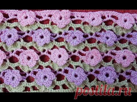 Объемный Узор крючком (летний топ часть 2) комбинированное вязание - YouTube