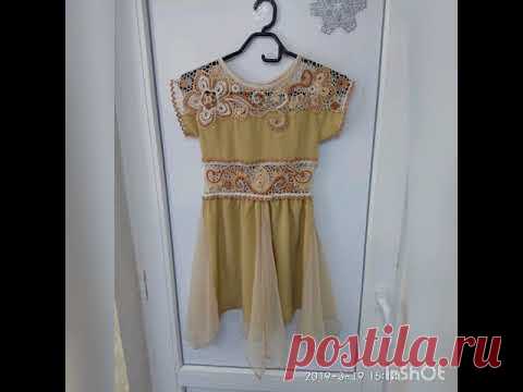 Золотое платье (итог) ирландское кружево комбинированное вязание платье для девочки крючком - YouTube