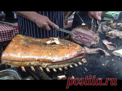 Argentina Street Food. Huge Blocks of Meat on Grill. London
