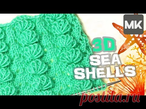 МОРСКИЕ РАКУШКИ 3D / Узор спицами / Подробный пошаговый МК по вязанию / Crochet pattern - YouTube