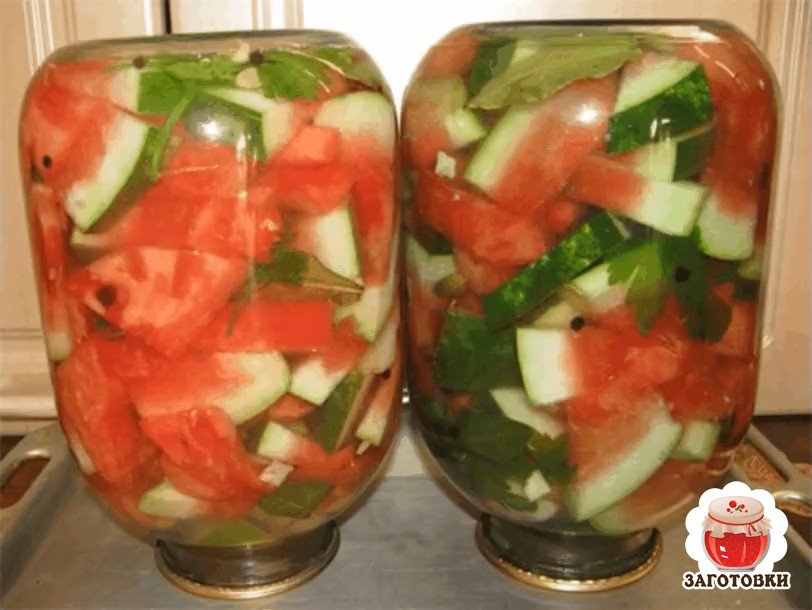 МАРИНОВАННЫЕ АРБУЗЫ Уже несколько мариную арбузы. Очень они получаются интересными на вкус. А сам процесс не занимает много времени. В супермаркетах они еще есть, так что можете и вы успеть приготовить. Арбуз режем небольшими кусками и очищаем шкурку (пробовала мариновать и со шкурой, но она таки твердовата потом). Готовим банки – хорошо помыть и простерилизовать привычным способом. В каждую банку кладем веточку укропа, лавровый листик, зуб чеснока и заливаем кипятком. Прикрываем ошпаренными к