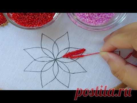 Hand embroidery: beads flower, easy beaded embroidery design, beads work for dress