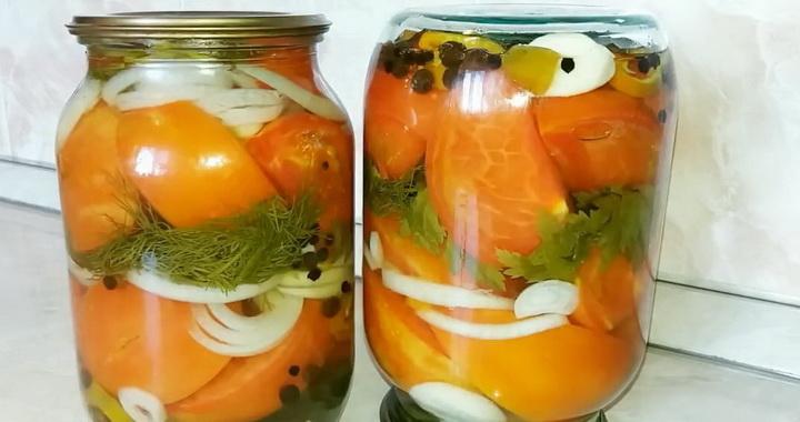 Помидоры дольками на зиму 🥝 без стерилизации по простому рецепту Подробный рецепт с фотографиями заготовки на зиму вкусных помидоров дольками (половинками), с добавлением моркови, лука, петрушки, без стерилизации