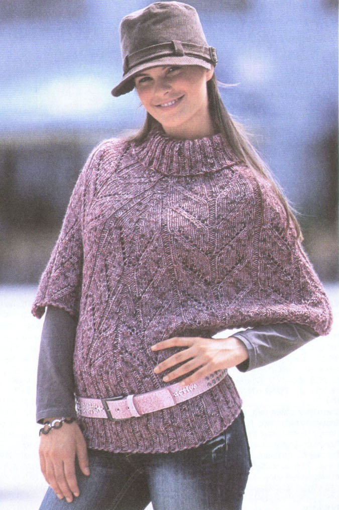 Меланжевый свитер-пончо спицами. / Мир хобби