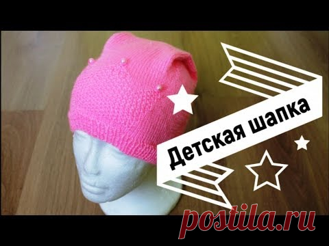 МК Простая детская шапка с короной вязаная спицами / Катрин Кев/ с трикотажной макушкой