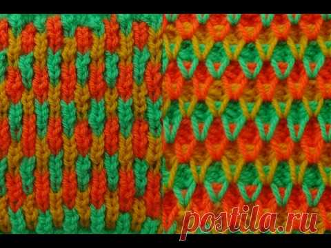 Трёхцветный узор. Вязание на спицах. Knitting. Pattern