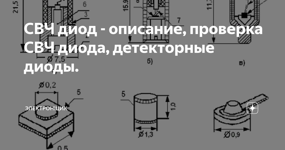 СВЧ диод - описание, проверка СВЧ диода, детекторные диоды. СВЧ диод обладает малой электрической стойкостью, поэтому при обращении с ним стоит соблюдать особую осторожность. Каждый диод должен находиться на хранении в закрытом металлическом патроне. Необходимо следить за тем, чтобы статическое электричество с тела или приборов не разряжалось через диод. Сверхвысокочастотным (СВЧ) диодом называют диод-полупроводник рассчитанный на функционирование в СВЧ сп