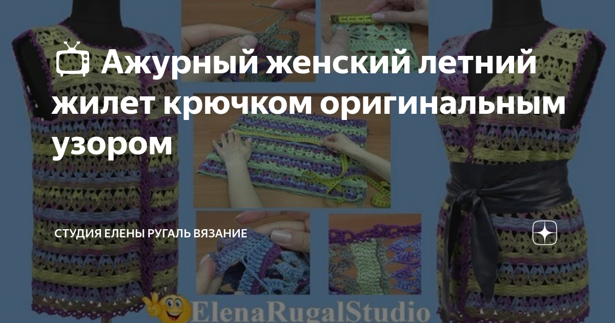 📺 Ажурный женский летний жилет крючком оригинальным узором Вяжите вместе с нами по видео красивый жилет-кардиган крючком оригинальным узором. Такой вязаный жилет кардиган можно носить в нескольких вариантах: с поясом, с завязками застежками, закрепив верхнюю часть брошью или заколкой. Размеры жилета кардигана: 42-48. Силуэт свободный.