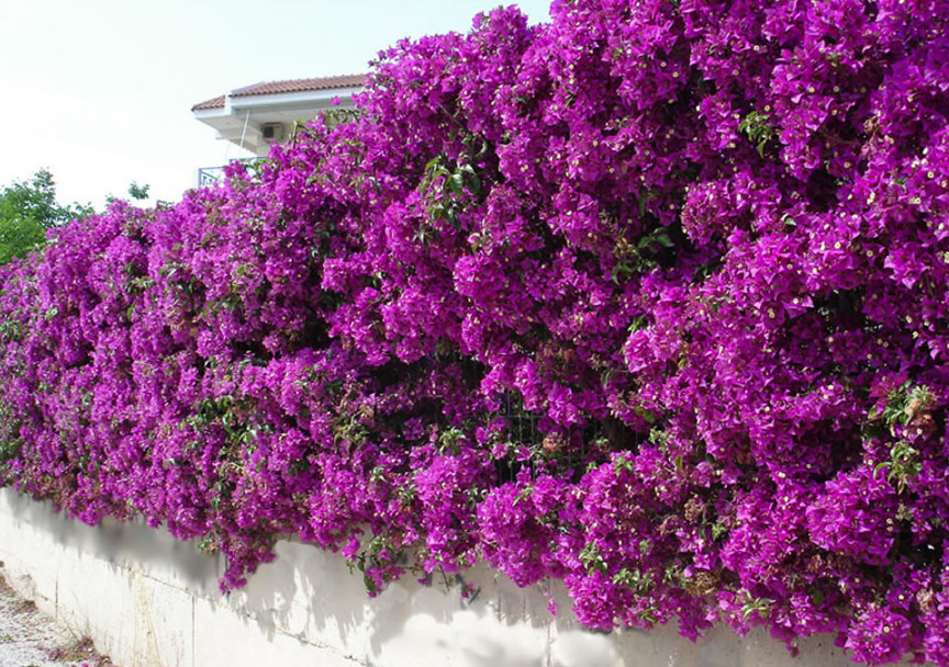 Украсить старый забор помогут 11 растений Для того чтобы украсить забор, подойдут любые вьющиеся растения. Чаще всего используют многолетние растения, которые быстро растут. Если у вас на даче забор из сетки, то растения помогут скрыть участок от чужих глаз. Есть растения, которые быстро растут, с помощью их можно украсить забор и улучшить внешний вид огорода. Бугенвиллея Это красивое многолетнее вьющееся растение.