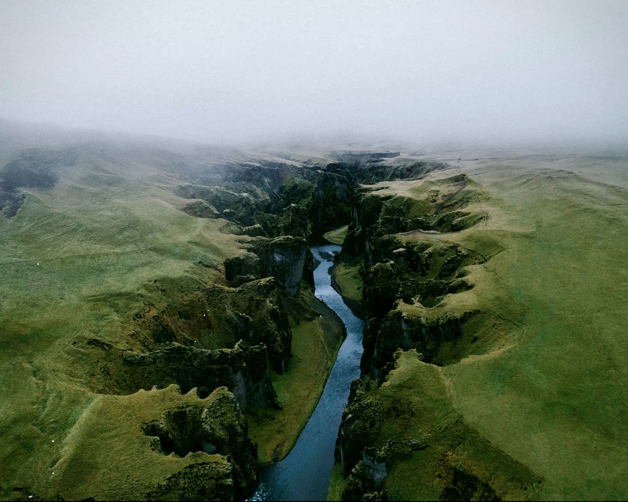 Картинки исландия, река.трава.птицы, туман вид сверху - обои 1280x1024, картинка №357054