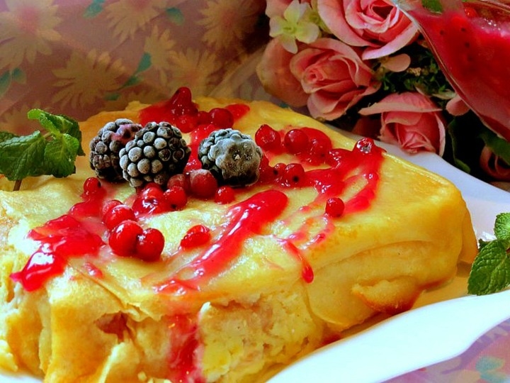 Блины с творогом и персиками — Sloosh – кулинарные рецепты