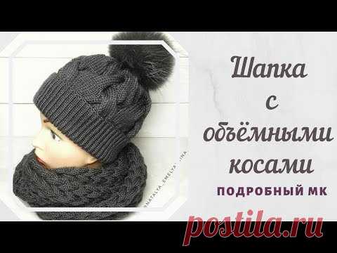 Шапка с объемными косами /// Шапка спицами/// Мастер-класс.