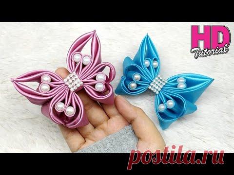 DIY - bros kupu-kupu dari pita satin || how to make satin ribbon butterfly || kanzashi flower