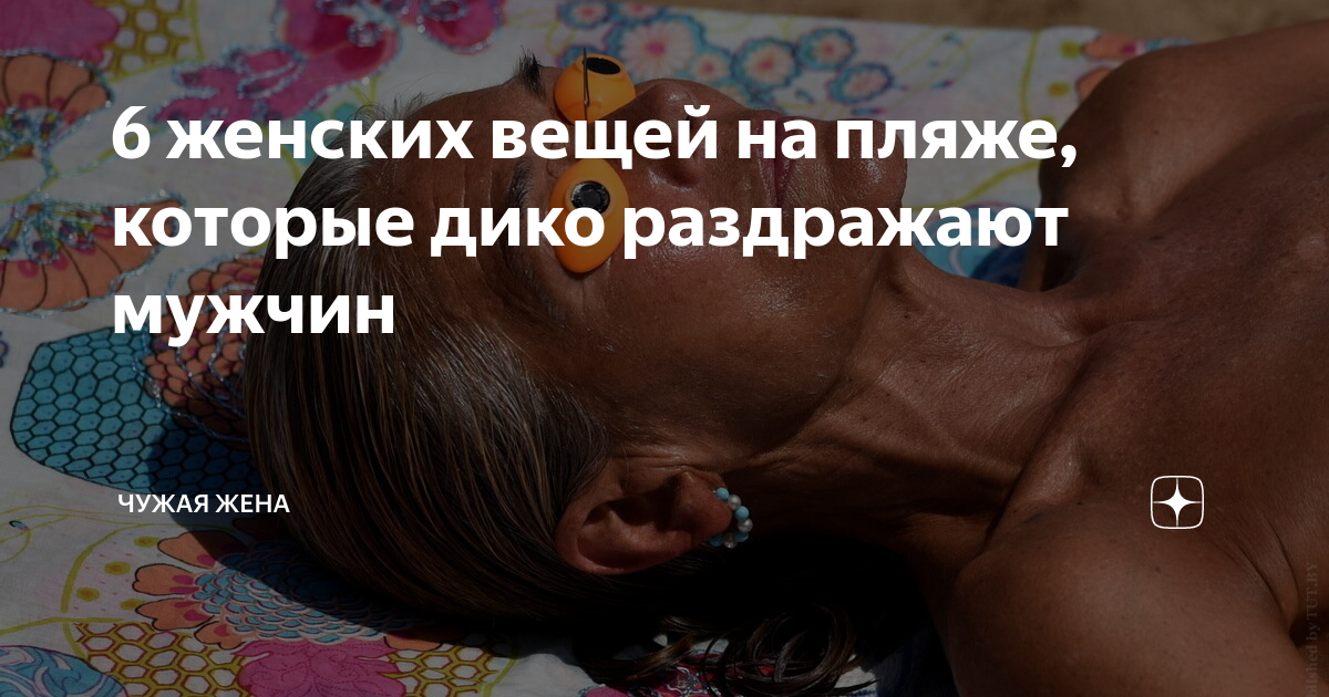 6 женских вещей на пляже, которые дико раздражают мужчин Несмотря на то, что женщины и мужчины с разных планет, жить друг без друга они не могут. Правда, есть некоторые вещи, которые безумно раздражают мужчин, но девушки усиленно не обращают на это внимание. Разберемся, что раздражает мужчин на пляже? За окном ведь лето. Дорогой, намажь мне спинку кремом! https://img.tyt.by/n/reuters/09/f/zagar_plyazh_kurort.jpg По статистике, 8 из 10 мужчин не любят на