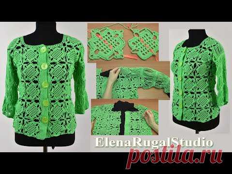 Подробный мастер-класс вязания кофты крючком Урок 86 часть 1 из 2
