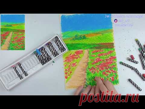ВИДЕО УРОК\TUTORIAL Рисуем масляной пастелью поле с маками! #Dari_Art