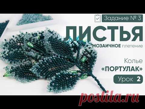 Колье "Портулак". Второй урок: "Листья".[Исправленная версия]. Косое-мозаичное плетение + схема