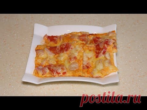 Выкладываю лаваш слоями, а сверху начинку и вкусная пицца готова.