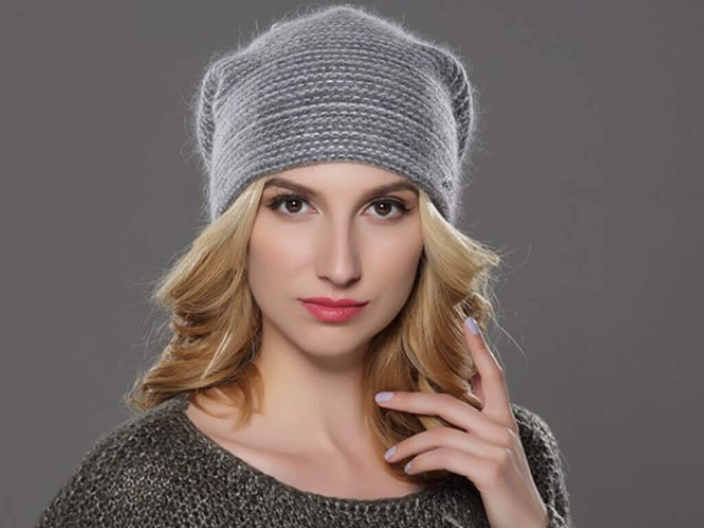 Шапка бини спицами: лицевой гладью и платочной вязкой (схемы)