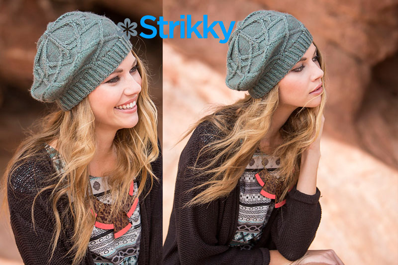 Женский красивый берет с ромбовидным узором вязаный спицами