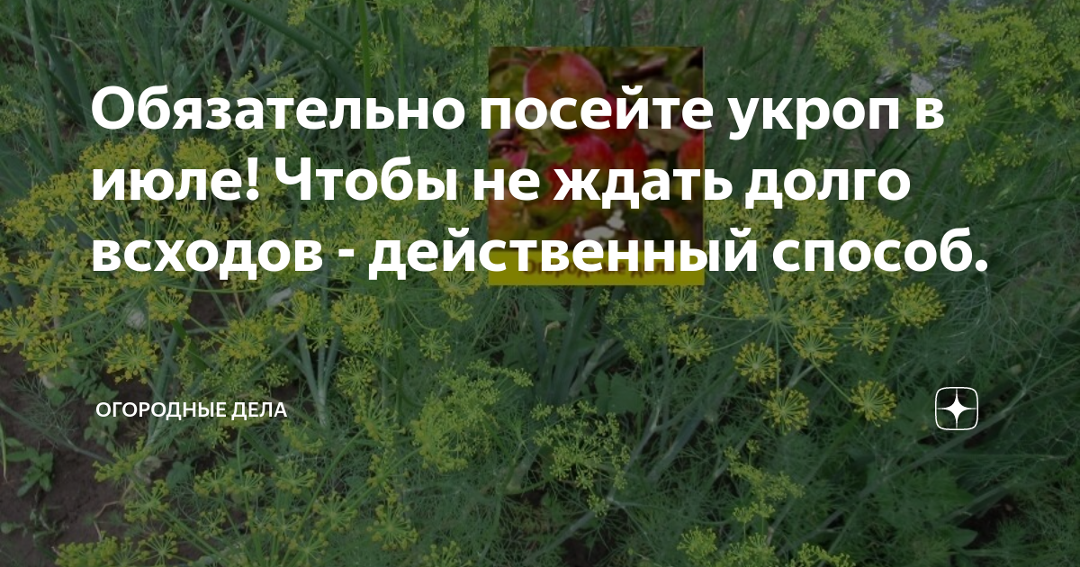 Обязательно посейте укроп в июле! Чтобы не ждать долго всходов - действенный способ. К началу июля обычно срезана на сушку вся зелень укропа, оставляю часть с зонтиками для самосева и соления.
