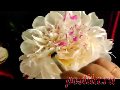 Пион и бутон из атласных лент/DIY embroidery ribbons