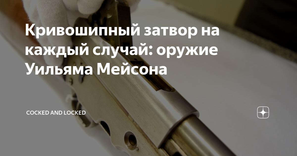 Кривошипный затвор на каждый случай: оружие Уильяма Мейсона Не всем оружейникам удается вписать свое имя в историю, но это не значит, что их работы недостойны внимания. Уильям Мейсон, работавший в конце XIX-начале XX веков на Winchester совместно с Джоном Браунингом, так и не смог войти в число великих. Зато его оружие хорошо иллюстрирует как раз тот период, когда люди только начали переходить на самозарядные схемы.
