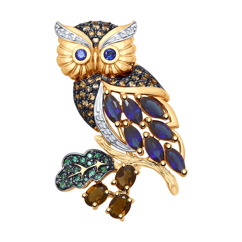 Брошь из золота «Сова» с миксом камней SOKOLOV – купить в официальном интернет-магазине, доставка по Москве и РФ, цены и отзывы, арт. 740235