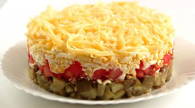 Слоеный салат с сыром и баклажанами