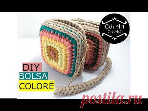 Bolsa de crochê fácil - Bag crochet - Bolsa quadrada - DIY - Fio de malha | Edi Art Crochê