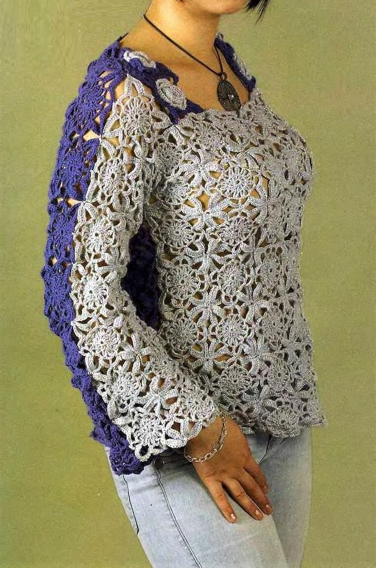 Двухцветная ажурная кофточка крючком, схемы и описание | Идеи рукоделия | Яндекс Дзен