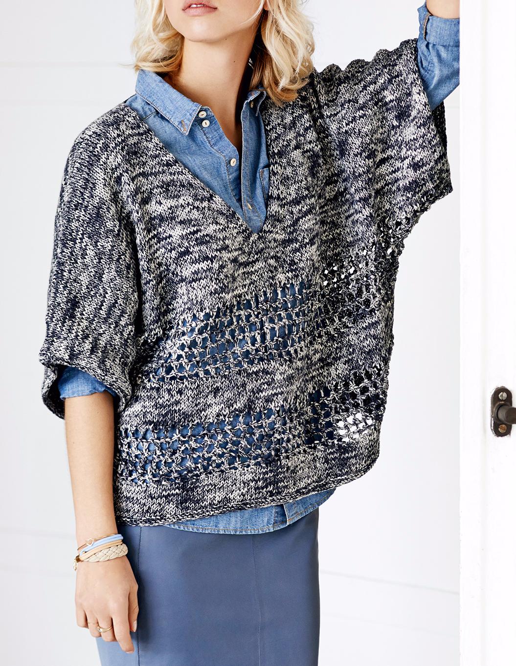 Широкий пуловер-безрукавка с полосами сетчатым узором. Спицами. / Сайт Люди Вяжут