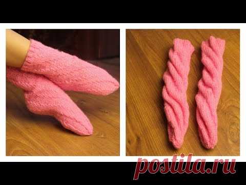 СПИРАЛЬНЫЕ НОСКИ СПИЦАМИ ♥ ПРОСТО и БЫСТРО ♥ НОСКИ без ВЫВЯЗЫВАНИЯ ПЯТКИ