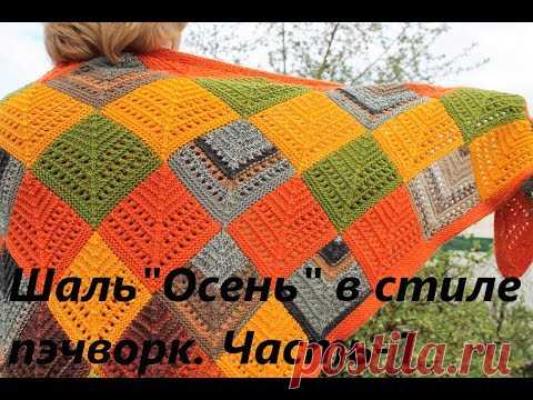 Шаль "Осень" в стиле пэчворк. Часть-1.(Из остатков пряжи)