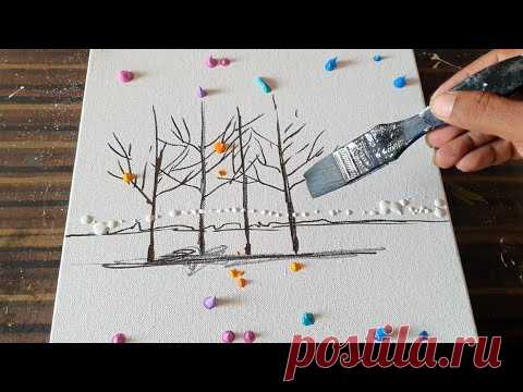 Easy Abstract Landscape Painting Demo/ For Beginners/Acrylics & Fan Brush/Daily Art Therapy/Day#0141