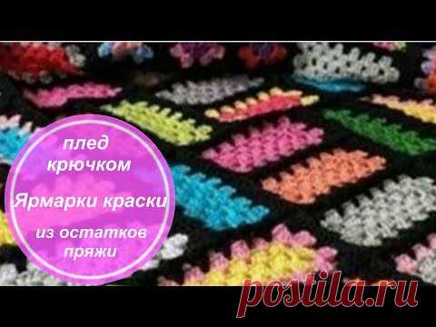 Плед крючком "Ярмарки краски" из остатков пряжи. Плед из прямоугольных мотивов.