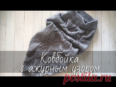 Ковбойка (снуд с уголком) с ажурным узором спицами. Подробный МК. Снуд-бактус-манишка спицами.
