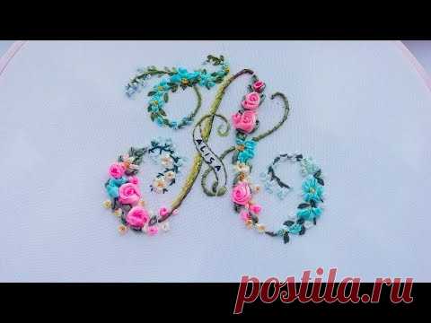 Twirled Ribbon Rose 🌹Monogram "A"| Вышивка 🌹Роза|bordado con cinta 🌹Letra A