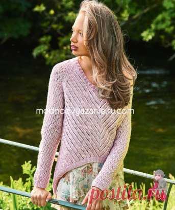 Пуловер с фигурным нижним краем Узор из сходящихся диагональных «прошв» и фигурная линия нижнего края с укороченным передом делают этот тонкий пуловер невероятно актуальным сегодня. ОПИСАНИЕ ПО ССЫЛКЕ